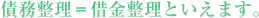 つまりは、債務整理とは消費者金融やクレジットカード会社から借りたお金が返せなくてしまった際に、法律に基づいて、